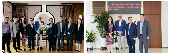 OnNovember 4, at the invitation of Mr. Wu Yigang, Chairmanof Ningshing Holdings, Mr. Micalo Bermudez, President of Tamboril ParqueIndutrial of the Dominican Republic, visited Ningshing Holdings. Chairman WuYigang greeted Mr. Micalo warmly with the senior management team and hosted aluncheon. Mr. Xu Jianhua, deputy director of Ningbo CommerceCommission, attended the meeting at Ningshing Holdings headquarters. Mrs. GaoPing, Vice Chairman of Ningshing Holdings, Mr. HuangYongzeng, Vice President of Ningshing Holdings, Zhang Lei, Executive Vice President of Ningshing Trade Group and TongXiaojian, General Manager of Ningshing Dominica DJM FootwearCompany, accompaniedthe reception.
