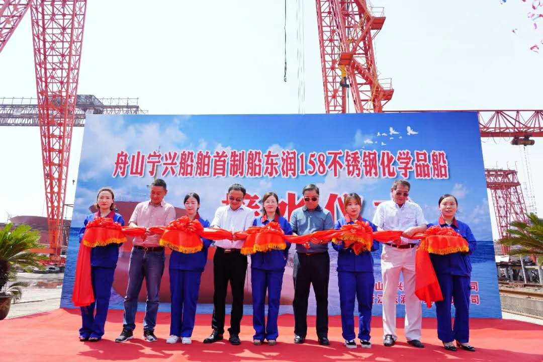 On September 4th, the launching ceremony of a stainless steel chemical ship "Dong Run 158", the first ship of Zhoushan Ningshing Ship Building &Repairing (Hereinafter referred to as ZNSBR), was successfully held in its Ship Factory. The ceremony was jointly organized by ZNSBR and the ship owner, Zhejiang Dongrun Shipping Co. (Hereinafter referred to as ZDS). Mr. Wu Yigang, Mr. Huang Yongzeng and Mr. Wang Wentong, namely Chairman, President and Vice President of Ningshing Holdings, Mr. Zhou Xinguo and Zhou Zuguo, Chairman and General Manager of ZDS, Mr. Qian Guangfa, Chairman of Ningbo Foreign Enterprise, Ningshing’s Strategic partner of ZNSBR project, Mr. Xia Puzhen, Deputy Director of Zhoushan Office of China Classification Society, and representatives of the ship construction units and suppliers were also invited to attend.