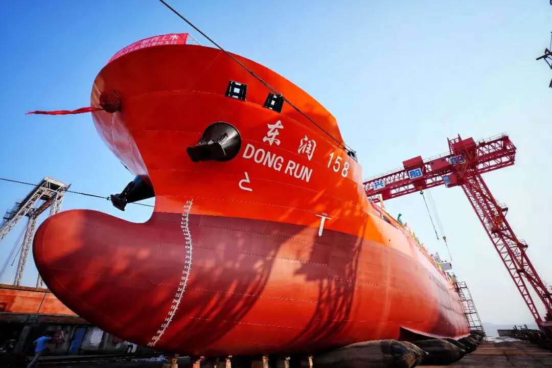 Under the witness of the guests at the scene, Chairman Wu Yigang, Chairman Qian Guangfa, Chairman Zhou Xinguo and Deputy Director Xia Puzhen jointly took the stage to cut the ribbon for ship "Dong Run 158". President Huang Yongzeng announced the start of “Dong Run 158” launching.